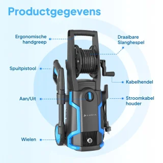 - Lengte slang: 5 m (geïntegreerde slanghaspel)
